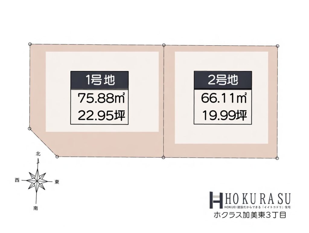 | 土地面積 | 66.11㎡、75.88㎡(19.99坪、22.95坪) | 建物面積 | |